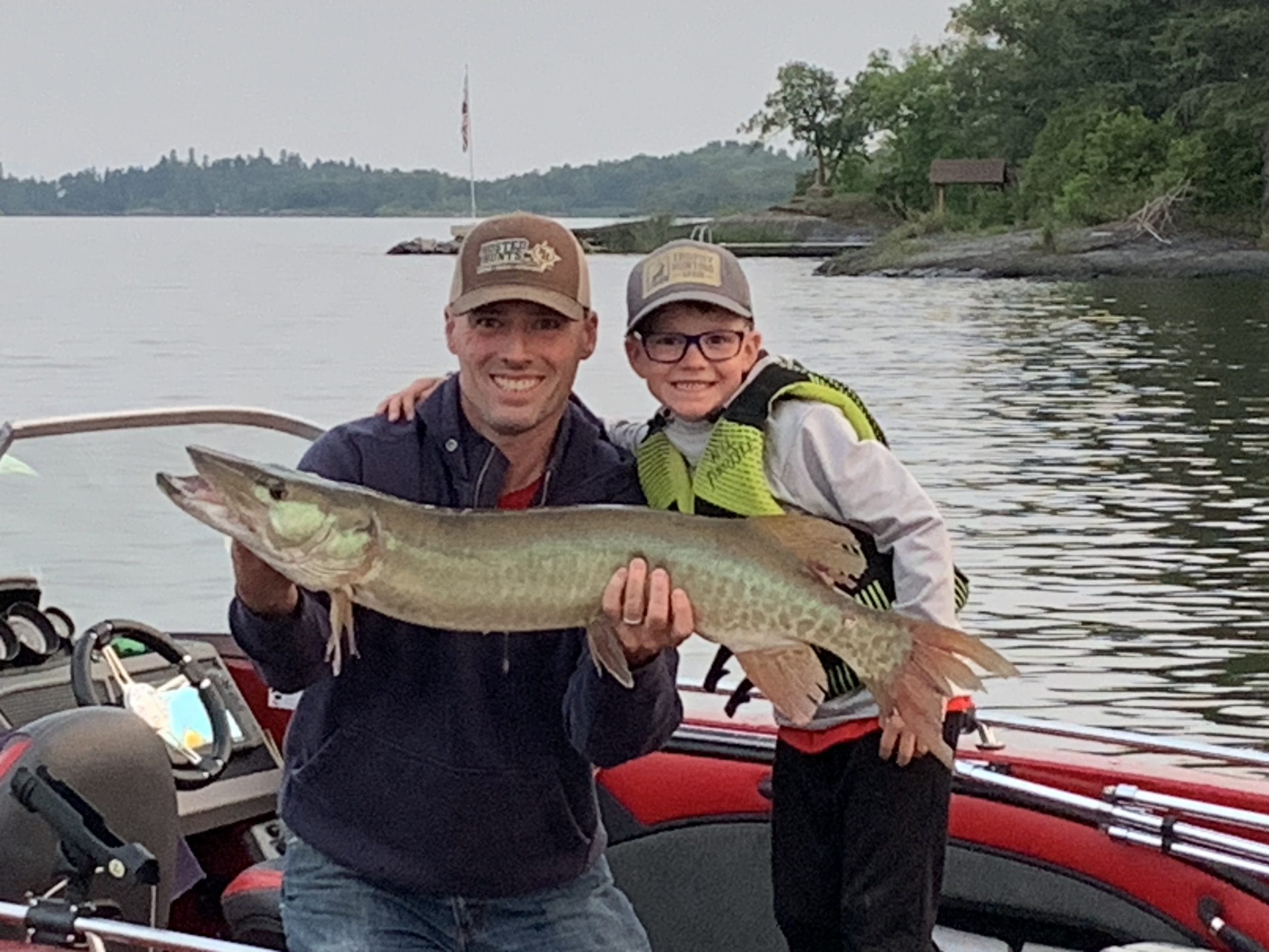 Walleye Fishing on the south end remains red hot. Fish are in the main basin so you will need your sonar to find them. BUT, once you do, hang on! There are a bunch of them and they are eating!! The lake seems to be chock full of mid 20’s up through 30″ and there are enough unders to keep everyone full. Spinners with a 2.5 or 3 oz bottom bouncer are working for most people. Some are downrigging and some are jigging or casting at them. Again, the key is to use your sonar to find them!Up at the angle Walleye fishing has picked up a lot. Jigging on the reefs or pulling spinners around them both produce. Muskie fishing has been typical of late July – awesome! We have several reports of multiple big fish days and it seems as most people are having some sort of action every time out.