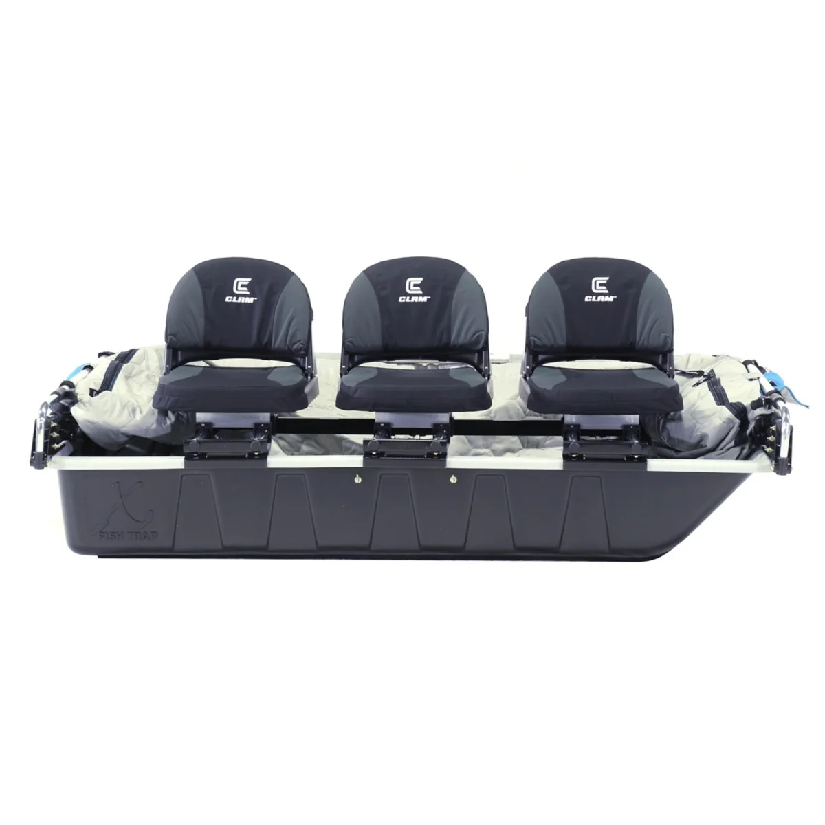 The Clam Fish Trap X Series X300 Pro Thermal XT Ice shelter is perfect to sit up to 3 anglers on the ice. This Clam X300 Pro Thermal XT Ice Shelter features an ultra-tough 1800 total denier fabric to withstand the toughest of winter weather conditions. The side doors offer easy entry and exit access without tripping over your gear or supplies while the grey-colored inner tube helps you more easily locate stored gear. The Clam X-Series offers quality poles and skins that are thick with the toughest of tubes. Plus, This Clam ice shelter has 40 square feet of fishable area to use for ample space for all 3 anglers. Enjoy a full day on the ice with this 3-seated Clam Fish Trap X Series X300 Pro Thermal XT Ice Shelter. Includes: