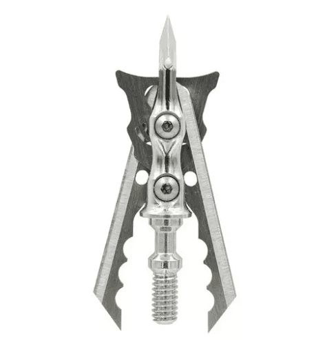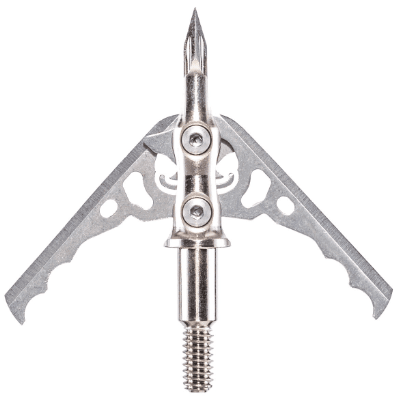 The revolutionary Hypodermic Crossbow NC utilizes cutting-edge finger-like tabs on the blades’ Slip Cam™ pivot point to “anchor” them in place while in the closed position, completely eliminating the need for a SHOCK COLLAR™, dental band or O-ring, while still providing reliable blade retention. Upon impact, the blades instantly deploy to a 2-inch cutting diameter, administering the gaping wounds that bowhunters have come to expect from the field-proven Rage Hypodermic series. The new Hypodermic Crossbow NC features the lethal Hypodermic hybrid tip with an even narrower profile and needle-like ferrule. In flight, that streamlined design makes for superior field-tip accuracy. The two .035″ thick blades deploy on impact, sliding into a swept-back blade angle while the monstrous 2″ cutting diameter delivers a wide entry hole for gruesome blood trails and brief tracking jobs.