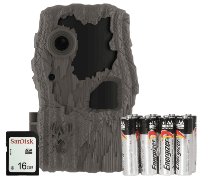 Fully loaded and ready to work right out of the box, the Spark™ 2.0 Combo 18-Megapixel Trail Camera from Wildgame Innovations™ includes the eight AA batteries that keep it running and a compatible SD card. It boasts a trigger speed of less than one second and captures crisp photos and clear, detailed 720p HD videos without audio of subjects up to 70 ft. out, delivering them in a high-resolution 16:9 format. Intuitive switch programming. Time, date and moon phase stamp selections. Includes adjustable tree strap with alligator-style clips. Cable-lock ready latch (security accessories not included). Available in Standard and Lightsout™ models.